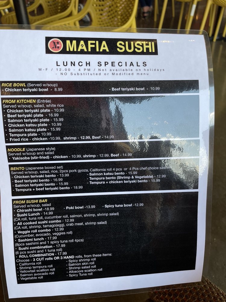 Located in Katy, TX, Mafia Sushi is a culinary gem that blends a casual atmosphere with an exceptional menu, perfect for families, groups, and sushi lovers alike. Renowned for its fresh sushi selections, the menu features a wide variety of sushi options, including Albacore, Yellowtail, and an impressive assortment of specialty rolls like the American Gangster Roll and Animal Roll.